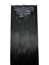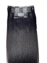 Elevate your hair game with our Seamless Clip-In Extensions. Designed for effortless blending and maximum comfort, weighing 135g and features a sleek, flat seam that hugs your scalp natural black colour. The discreet construction makes them nearly invisible once applied, while advanced seamless technology minimises shedding and tangling for long-lasting wear.